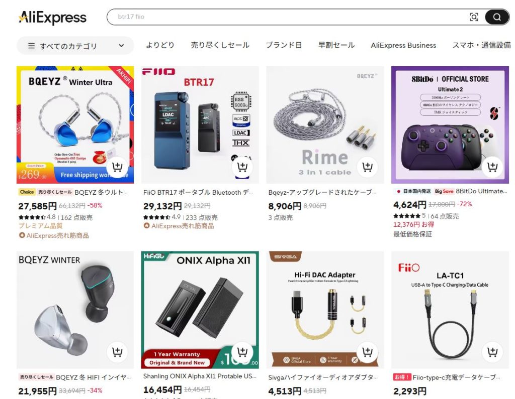 中華イヤホンはAmazoやイヤホン専門店e-イヤホンをはじめとした日本国内の通販サイトでも買えますが、AliExpress(アリエクスプレス) を利用するとかなり安く手に入ることがあります。